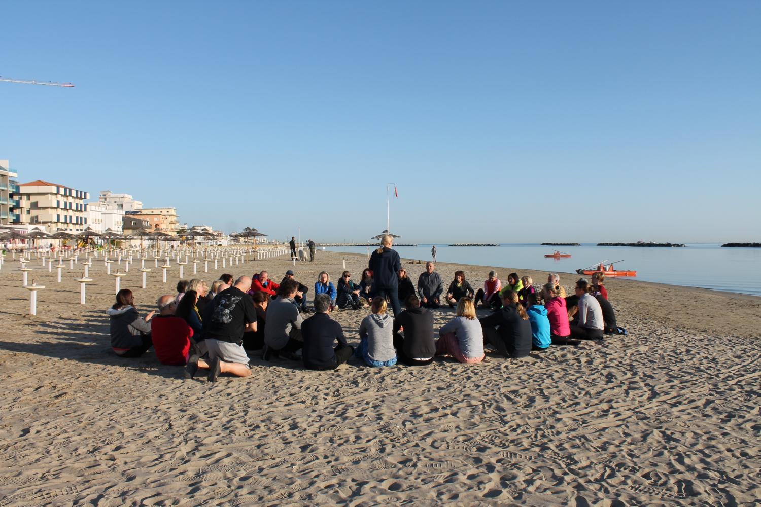 Am frühen Morgen, noch vor dem Frühstück, führte Marlen Schröder am Strand bei herrlichstem Wetter und zur Einstimmung für den Tag, durch Meditationen.