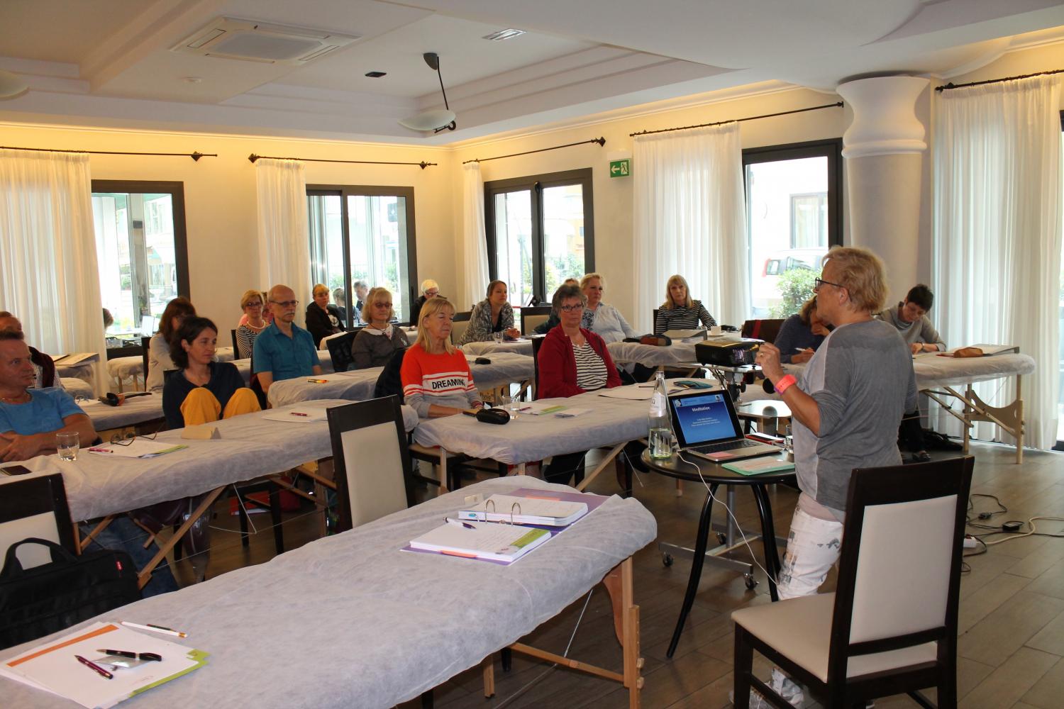 In angenehmer, mediterraner Umgebung konnten die 31 Teilnehmer in den Workshops zu den Themen „Trauma“, „Hormone“, „Die anatomischen Kompartimente am Fuß und Unterschenkel“ sowie „Der andere Atem – Versuch einer integralen Osteopathie“ ihr Wissen erweitern und vertiefen.
